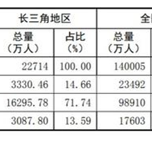人口方面,从人口总量看,长三角地区是中国第一大人口聚集区。报告数据显示,2019年,长三角地区三省一市常住人口2.27亿人,粤港澳大湾区为0.73亿人,长三角地区人口总量是粤港澳大湾区的3.1倍。从人口增速看,2016-2019年粤港澳大湾区常住人口共增加572.62万人,年均增长2.4%;长三角地区增加639.87万,年均增长0.7%,粤港澳大湾区人口增长快于长三角地区。