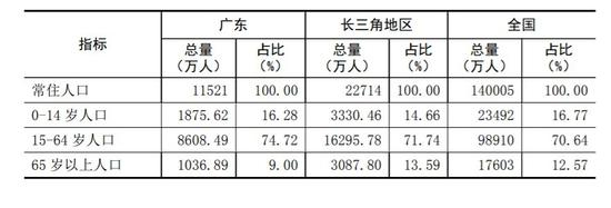 中国社科院城市发展与环境研究中心研究员牛凤瑞对第一财经分析,改革开放40多年来,广东尤其是珠三角吸引的外来劳动力特别多,外来劳动力主要是年轻人,因此常住人口也会更年轻。但是从产业结构上,大部分制造业的劳动力,以中学毕业为主。相对来说,受教育年限比较低,这也是珠三角目前不如长三角的一大短板。