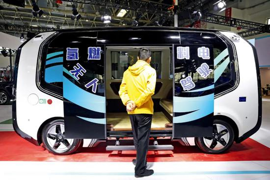 2020年11月11日,2020世界智能网联汽车大会上展出的氢燃料电池无人驾驶车。图/视觉中国