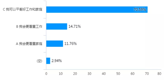 因此,家庭和工作的平衡是金融圈女性非常重要的一个课题,比较庆幸的是,在受访的女性当中,超过70%能够平衡好工作和家庭,另分别有14.7%和11.7%的女性选择会更看重工作和更看重家庭(图27)。
