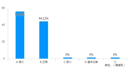 高强度带来了高压力,在工作压力测试这一问题上,有55.88%的女性受访者表示工作压力很大,44.12%选择了正常(图15)。