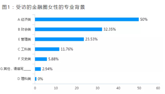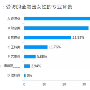 具体从新财富的调查来看,在专业背景上,参与调查的金融圈女性主要来自于经济类、财会类和管理类专业,其中,经济类专业占比达到一半,财会、管理类专业的占比分别有32.35%和23.53%(图1)。