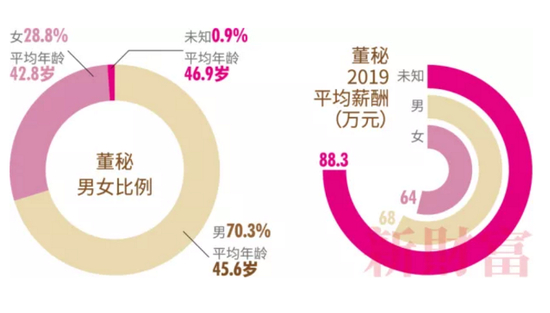 与调查结果佐证的是,新财富通过大数据分析公募基金经理、券商分析师、上市公司董监高的性别比例分布发现,越往资本链条最顶端,女性的占比越低。且女性高管的年龄均要小于男性,平均薪酬也低于男性。