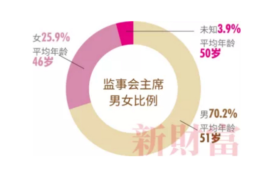 A股上市公司女性监事会主席的数量超过了1000人,占比达25.9%,她们的平均年龄为46岁,低于男性的51岁。在A股的董监高中,与董事长、总经理等职位相比,监事会主席的女性比例陡然得到了提升(图11)。