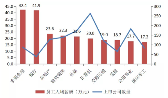 图18:A股上市公司员工人均薪酬行业分布TOP10