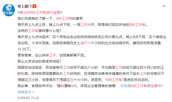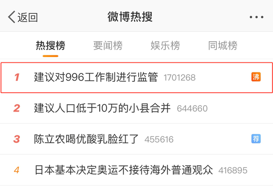 3月10日一大早,微博话题#建议对996工作制进行监管#登上热搜榜第一。