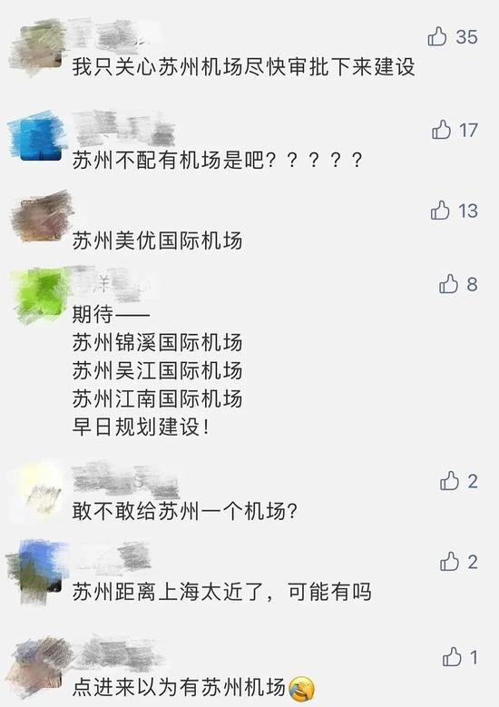 其实昨天的稿子讲的是城市第二机场建设,通篇并未提及苏州。但今早城叔翻看留言,发现评论区含苏州“浓度超标”了。