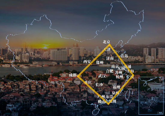 来看看各大城市在这块菱形上的分布: