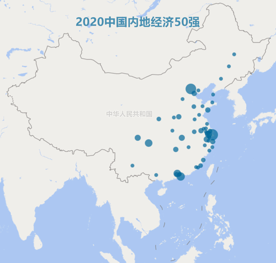 内地经济50强,仅6座城市落在菱形之外