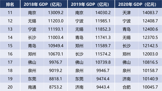 竞争有多激烈?看看近三年,经济总量排名第11-20位的城市变化,就知道了: