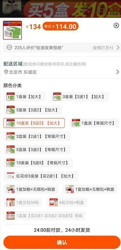“蕲大妈”旗舰店在线客服表示,所售艾柱“累计销售520万,用于日常养生治疗效果都是不错的。商品经严格考核,获得【天猫无忧购】平台的好体验商品认证,是平台精选的【口碑好货】,可放心购买。”并提示,“无论您腹寒月月痛,关节膝盖凉、养生调体湿,脾胃气血虚,男女人群均可使用,艾烟具有杀菌消毒作用,不用考虑先拍下付款后支持开封试用。”