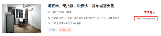 乐居网房产经纪人也爆料称,同样在梅园二街坊,一套32㎡的学区房在新政前挂牌720万,新政后立刻修改到699万。
