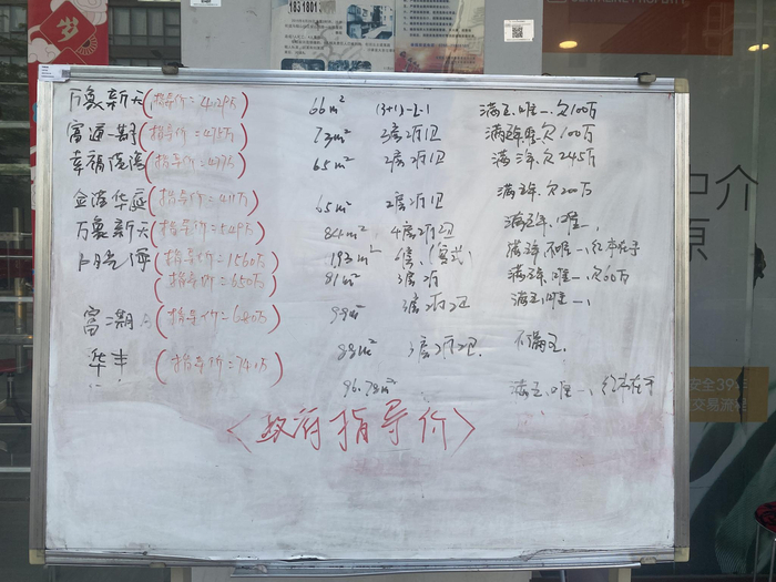 澎湃新闻走访深圳多家中介门店发现,新政后二手房源实际挂牌价格均未在门店内展示,不少门店外几乎看不到房源信息,有个别门店展示的也仅标识政府指导价。有门店原本应该展示房源的标牌上写着“欢迎进店咨询”几个大字。