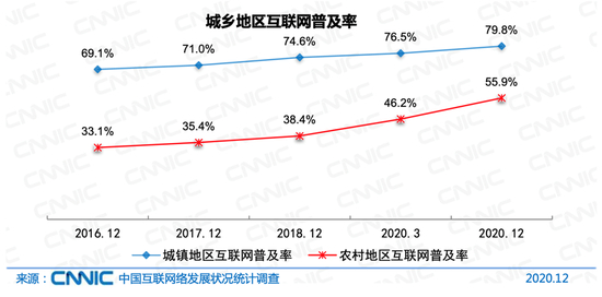 我国在上一轮的信息基础设施建设中,建成了全球规模最大的光纤网络和4G网络,全国范围内行政村通光纤和通4G比例双双超过98%,基本实现城乡“同网同速”;农村网民规模达到3.09亿,农村地区互联网普及率达到55.9%。由硬件条件差距导致的数字鸿沟以肉眼可见的速度在收窄。