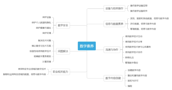 至于如何衡量数字素养,联合国教科文组织在2018年发布的《全球数字素养框架》报告可供参考。报告中提出了包含7大数字能力域和26项具体能力的数字素养框架,具体如下图所示: