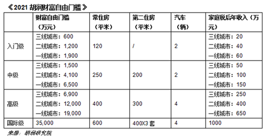 31日,胡润研究院发布的《2021胡润财富自由门槛》给出了一份参考答案。