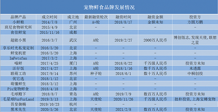 图/宠物鲜食品牌的发展情况(数据来自企查查)