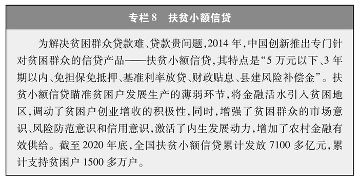 贫困地区发展条件差,贫困人口自我发展能力弱,消除贫困仅仅依靠个体、区域、民间等力量远远不够,必须作为执政党和国家的责任,上升为国家意志、国家战略、国家行动。中国共产党始终把消除贫困作为定国安邦的重要任务,制定实施一个时期党的路线方针政策、提出国家中长期发展规划建议,都把减贫作为重要内容,从国家层面部署,运用国家力量推进。几代中国共产党人,锚定一个目标,一茬接着一茬干。中共十八大以来,中国共产党把脱贫攻坚摆在治国理政的突出位置,加强党的集中统一领导,统筹谋划、强力推进。从党的领袖到广大党员干部,情系贫困群众、心怀减贫大业,全党目标一致、上下同心。加强顶层设计和战略规划,制定印发《关于打赢脱贫攻坚战的决定》《关于打赢脱贫攻坚战三年行动的指导意见》等政策文件,明确目标、路径和具体措施并一以贯之抓下去。各级财政不断加大投入力度(图4),构建多元资金投入体系(专栏12),为减贫事业发展提供资金保障。发挥社会主义制度集中力量办大事的优势,广泛动员各方力量积极参与。建立脱贫攻坚责任体系、政策体系、组织体系、投入体系、动员体系、监督体系、考核评估体系等制度体系,为脱贫攻坚顺利推进提供了有力支撑。
