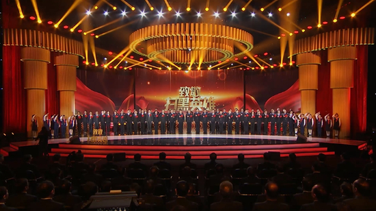 大屏幕上,一位老人头发花白,眼角泪湿。