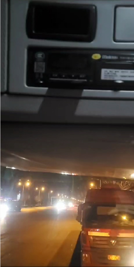 唐山市迁西县卡友张师傅向中国新闻周刊发来的图片显示,定位系统通常安装在方向盘的上方或驾驶室工作台附近,会显示时间、车速等。