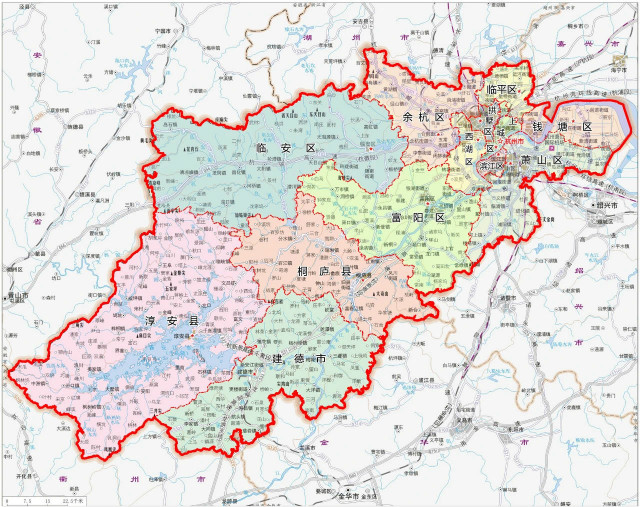 此次调整后,杭州市下辖10个区、2个县,代管1个县级市,分别为:上城区、拱墅区、西湖区、滨江区、萧山区、余杭区、临平区、钱塘区、富阳区、临安区、桐庐县、淳安县、建德市,总体建制数不变。