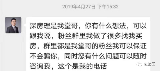 他的家人似乎也牵涉其中,一个名为李明君的男子,自称“深房理是我堂哥”,在深房理的粉丝群里推广房产咨询业务。但其实他是一位房产经纪人,最近的一份工作,就职于中原地产。