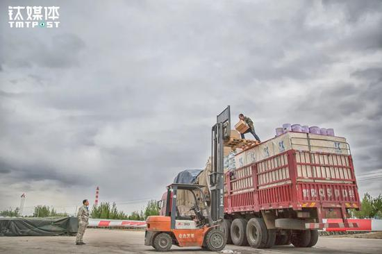 14日下午,金强一路赶到乌兰浩特,在这里他们要卸两批货,看天气似乎要下雨,金强只能加快进度。