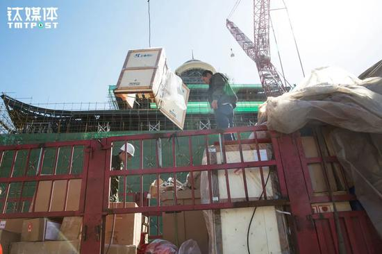 叉车装完大件,还有一些小件在顶上,金强又爬上车顶开始清点。