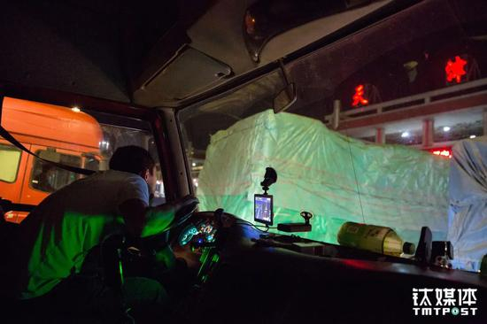 13日当晚卸完货,金强和朋友曹哥夫妇约在通辽一家油站外见面。曹哥夫妇也在外跑货运,他们比金强入行早,干了快20年了,这一趟他们刚从满洲里到锦州,正好路过通辽,大家两个多月没见了,就约着喝一杯。四个人在车里聊着路上遇到的事。曹哥告诉钛媒体《在线》,身边90%的货车都是夫妻车,“行情不好,雇个司机一个月多万把块钱的开销,大家基本都雇不起司机,夫妻一起在路上也是个照应,女的管钱和货单,男的开车”。