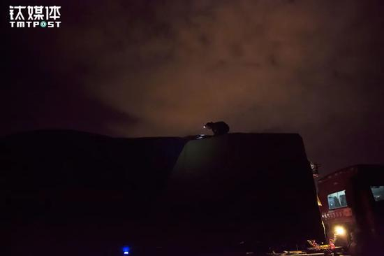 交接完毕后,夫妻俩又配合着整理货仓,重新盖上篷布。星空下,夫妻俩前前后后忙了90多分钟。