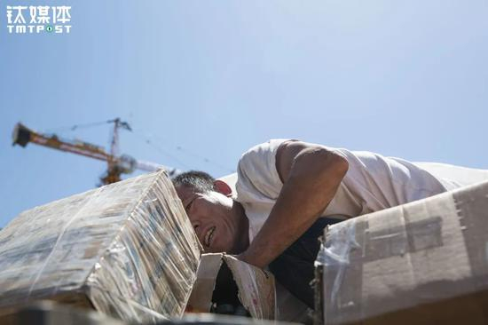 15日一早6点,金强俩人开始在工地卸货。看到王静像个“汉子”一样搬东西,这几天一直在着急催促的货主也释然了,他笑着对金强说:“你这媳妇儿真不错,你们俩这配合不错。”