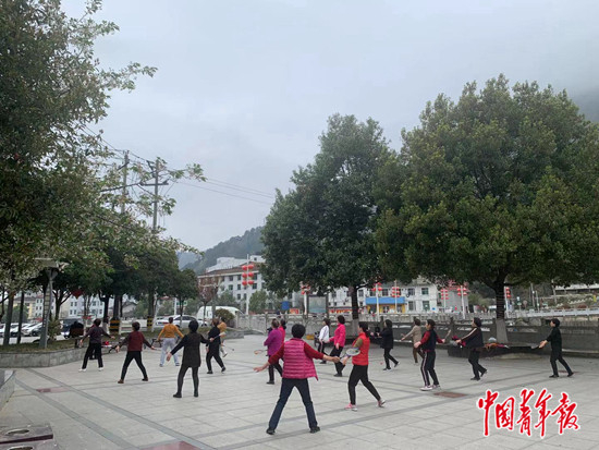 县城跳广场舞的人。