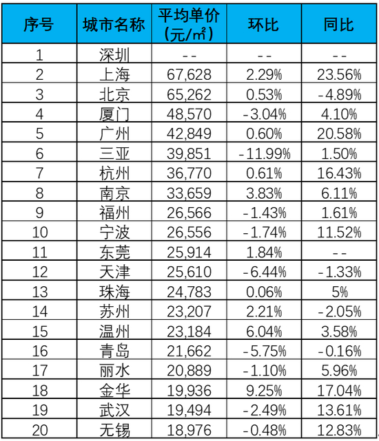 2021年3月全国房价前20城市,来源:中国房价行情网
