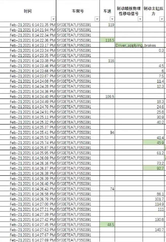 另外,关于事故发生前30分钟车辆的状况,特斯拉方面是这样叙述的:在车辆发生事故前的30分钟内,驾驶员正常驾驶车辆,有超过40次踩下制动踏板的记录。同时车辆有多次超过100千米每小时和多次刹停的情况发生。
