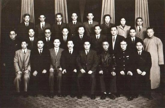 1950年初,上海,广大华行党员大聚会。(第一排左起谢寿天、卢旭章、吴雪之、刘少文、刘晓、刘长胜、徐雪寒、陈明)