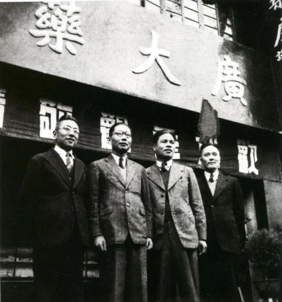 1943年,广大华行成都分行门市部开业。(左起陈鹤、张军光、卢绪章、张平)