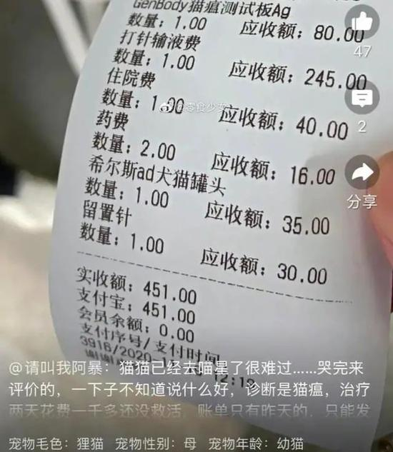 更有网友称,9.9元买的盲盒,因为收到的小猫有猫瘟,治疗费用接近500元。