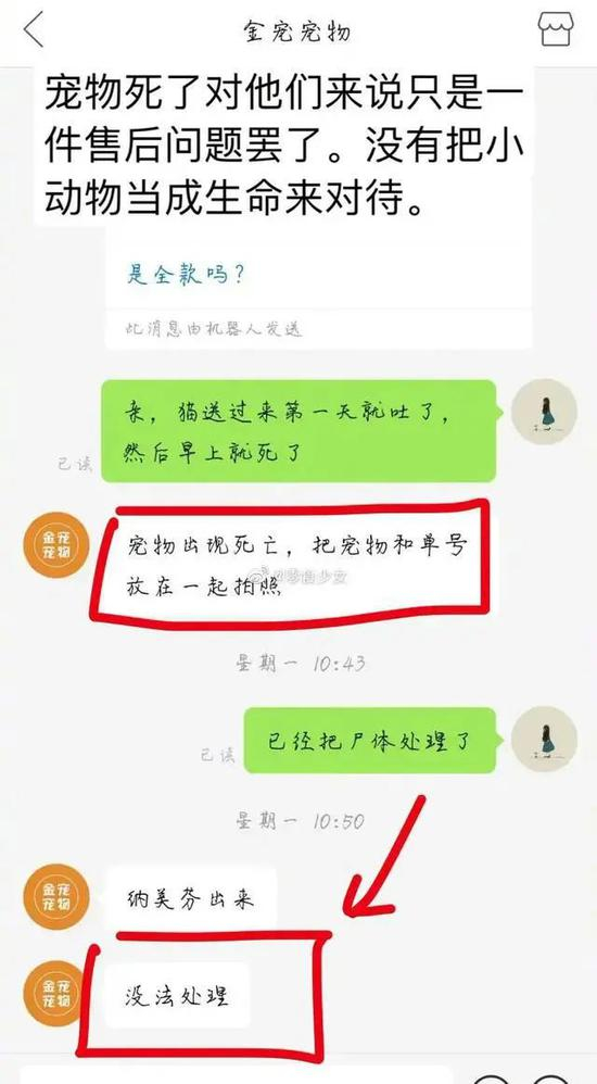 靠几千具动物尸体就能月入17万,这门生意简直不要太暴利。有网友晒出与卖家的聊天记录显示,宠物如果死了,对于卖家来说只是售后问题,对方并没有把小动物当成生命来对待。