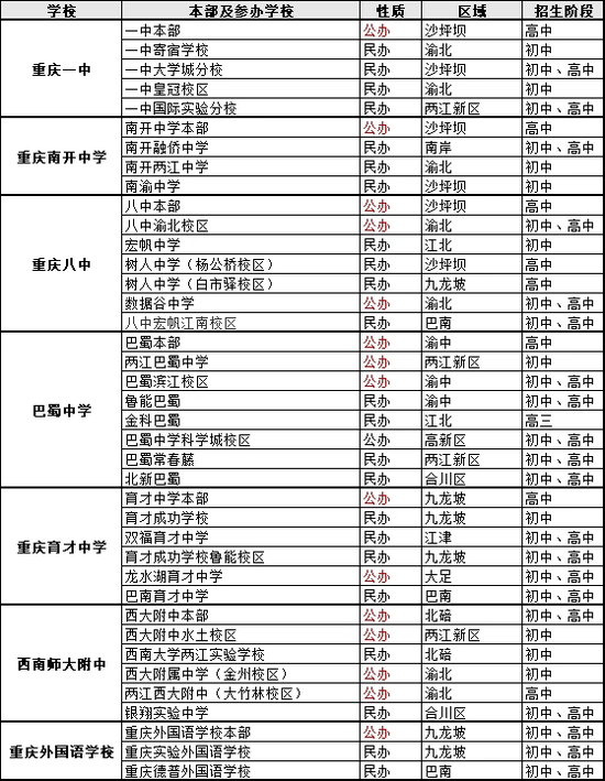 重庆的顶级学区也是分散的,7个顶级学区在本地还有一个非常霸气的名字