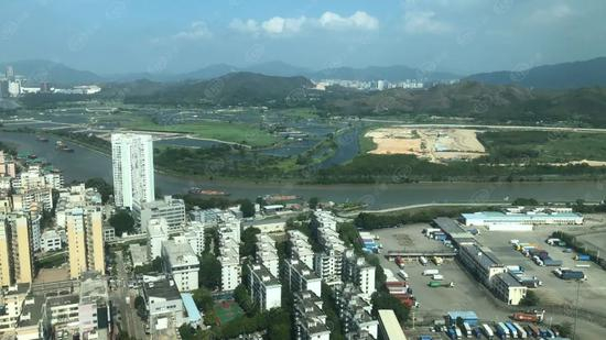 其西向户型朝园林,东向户型朝马路,与香港隔河相望。邻近皇岗关口,附近又有跨境物流场,车流不息。