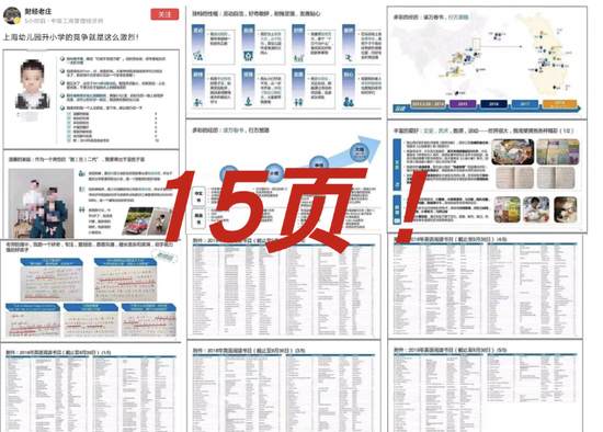上海市5岁小孩为了升小学,准备了15页简历——不仅能背诵100多首古诗,英语书年阅读量达500本,还精通围棋、足球、钢琴、绘画等多项艺术。