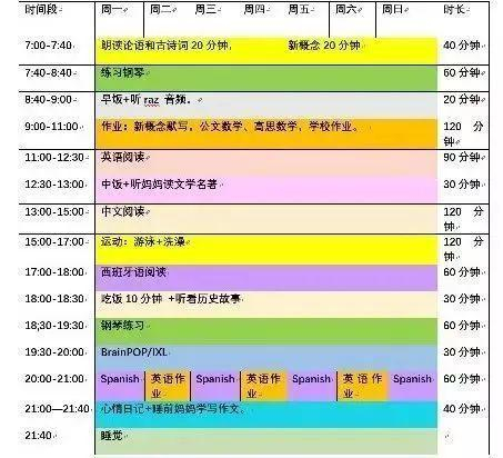 有人抛出了自己的鸡娃电子课表,从早上7点到晚上10点,被安排的满满当当,一个鸡娃,强度堪比996。