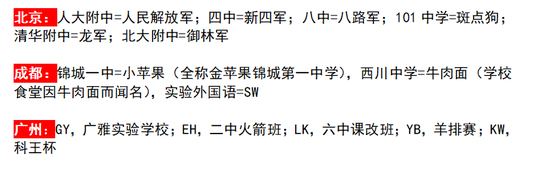其次,想要把鸡娃顺利送入重点学校,还必须熟练掌握代号: