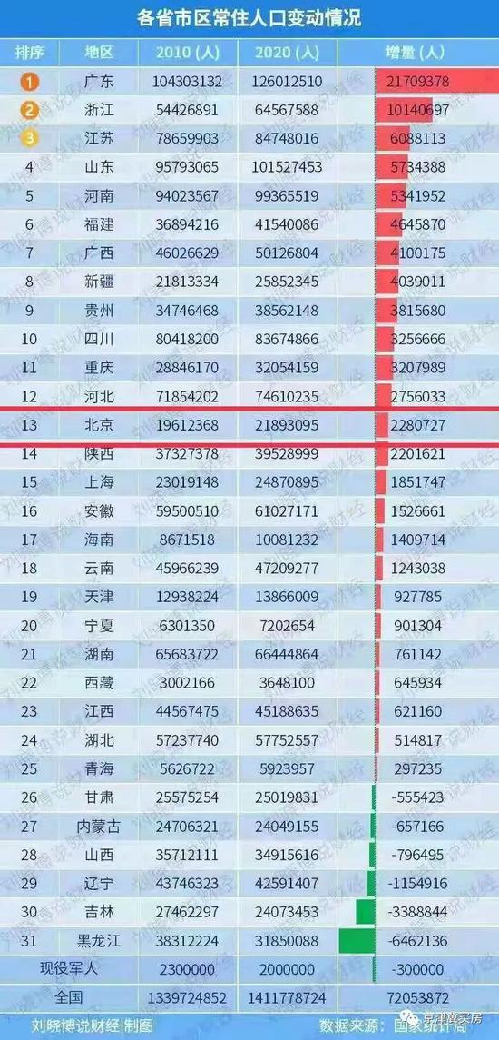 根据大v刘晓博根据人口普查的统计,十年来,广东、浙江、江苏人口流入最多。其中,广东以21709378人居首。