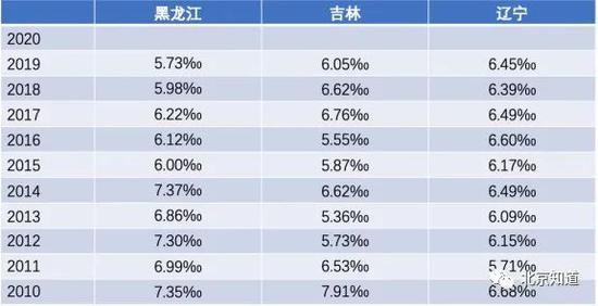 东北三省2010年-2020年生育率(2020年数据尚未公布)