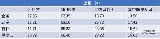 15-59岁的主要劳动年龄人口的占比则与全国水平(63.35%)接近,辽宁、吉林、黑龙江分别为63.16%、65.23%、66.46%。