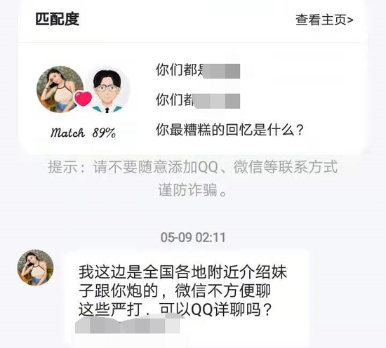 陈煜健表示拒绝。随后几天,所有主动加他的用户都提出“是否裸聊”、“是否看‘荤’直播”或“是否看激情小电影”等问题。