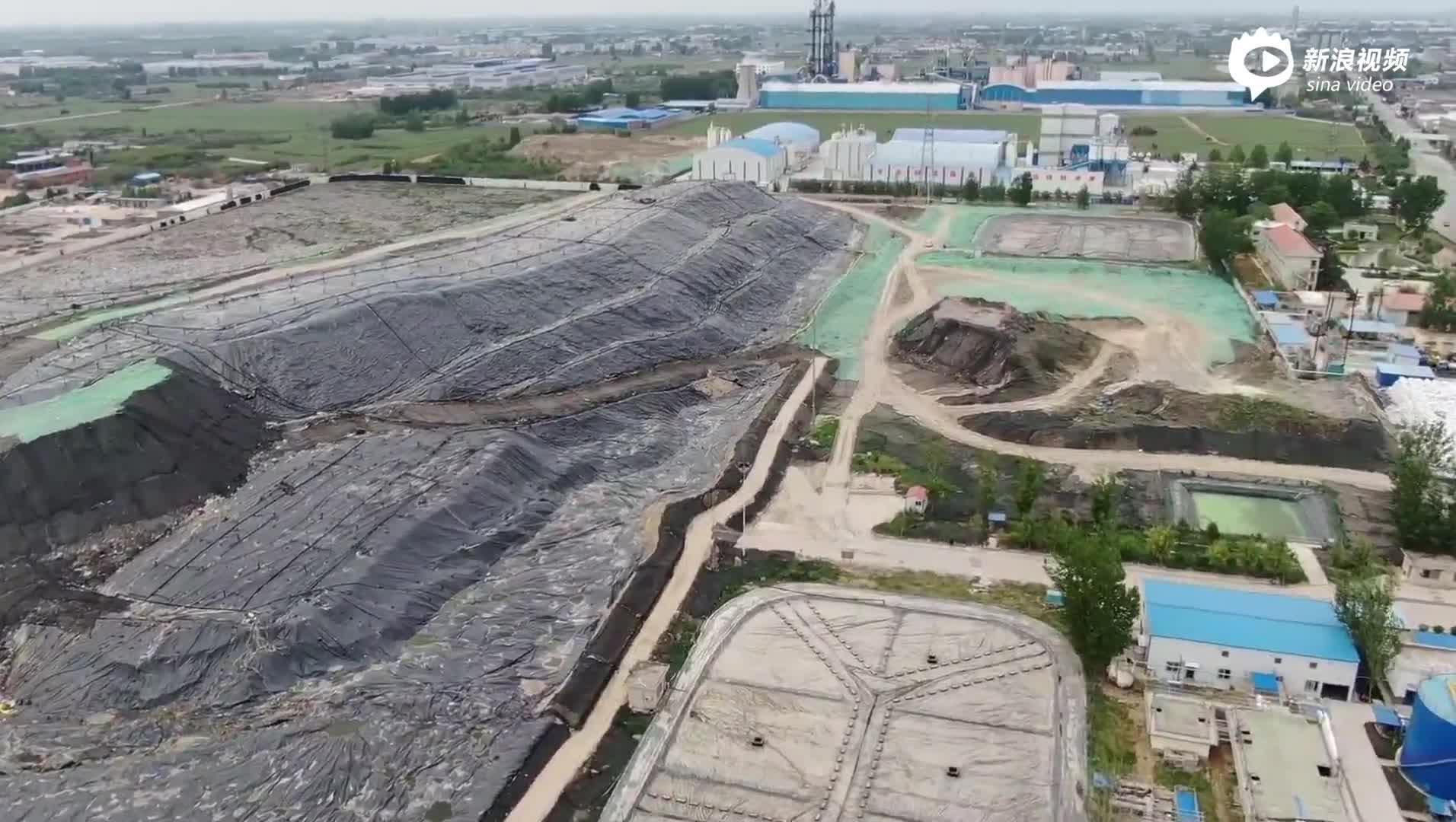 新乡辉县市生活垃圾填埋场多年超负荷运行,截至督察时剩余库容不足2000立方米,而当地生活垃圾焚烧厂建设仅完成80%,无法即时投用。大量垃圾在填埋场内无序堆存,作业面既未及时覆土也无任何除臭措施,部分垃圾在场外随意倾倒,场内外到处飘散塑料垃圾。据估算,该填埋场日产生渗滤液近100吨,却仅有一套日处理渗滤液不足10吨的简易设施,且生化处理系统长期不运行,曝气池内无污泥,二沉池和污泥回流池内已长满青苔。渗滤液贮存池上方PVC覆盖膜已严重破损,膜上积存雨水与渗滤液混合散发异味,池内仅积存渗滤液2000多立方米,与渗滤液产生量相去甚远,大量垃圾渗滤液去向不明。