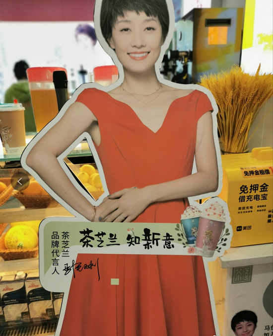 在茶芝兰的实体店中,亦有马伊琍的立牌、宣传图等为品牌的信用背书。