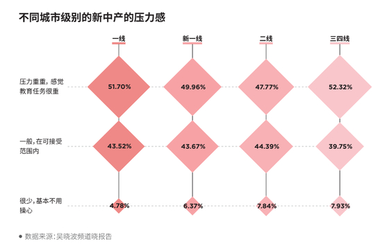 相比于一线、新一线、二线城市,小城父母反而是相对焦虑的人群。